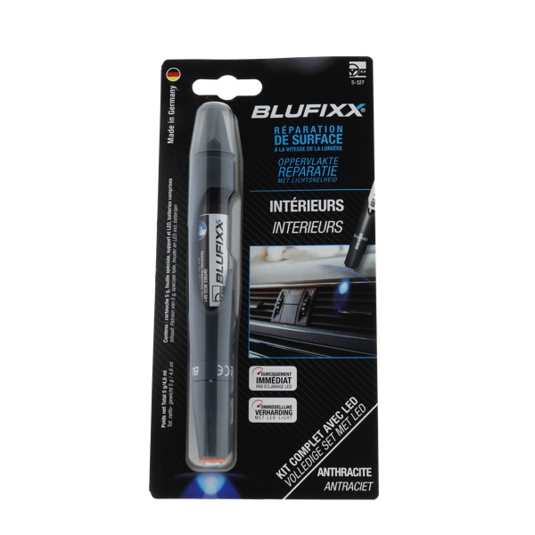 Item Details: Deze BluFixx Dashboard Reparatie set bevat een speciale gel waarmee schade aan uw dashboard gerepareerd kan worden. Met de meegeleverde LED-lamp kan de reparatiegel worden gedroogd waarna de gel uithardt tot een keihard oppervlak.