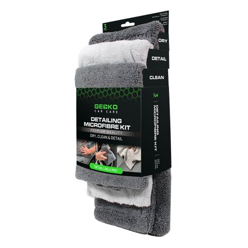 De Gecko Microfiber Kit is een complete set van drie hoogwaardige microvezeldoeken, speciaal samengesteld voor een perfect resultaat tijdens elke stap van het autodetailingproces. Met onze slogan dry, clean & detail als uitgangspunt biedt deze kit voor elke toepassing de juiste doek.